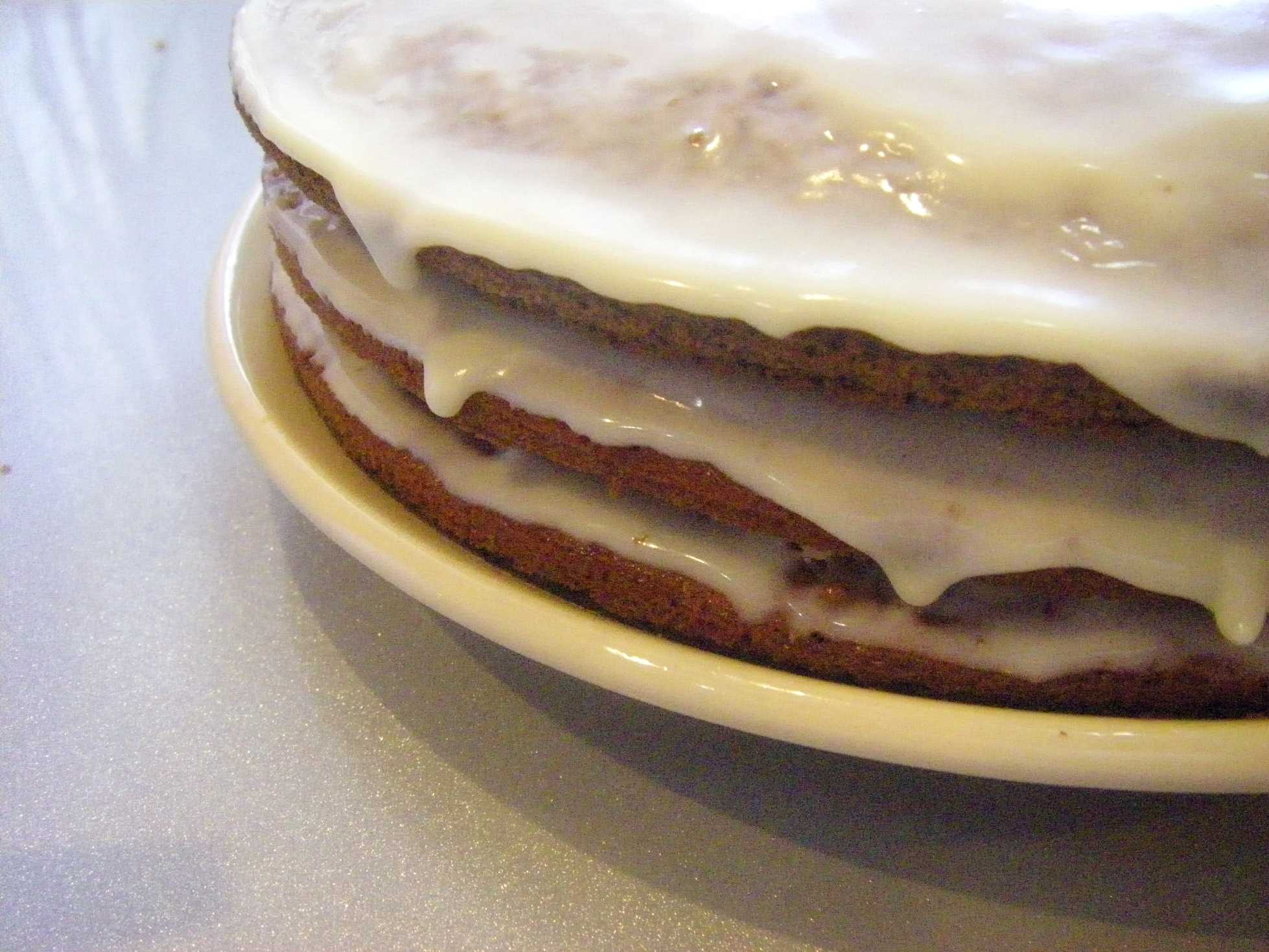 - На дно блюда наносим слой крема, кладем первый корж. Затем слой крема, второй корж; крем, третий корж и верх третьего коржа смазываем кремом. Торт покрываем остывшей глазурью и украшаем по своему усмотрению.