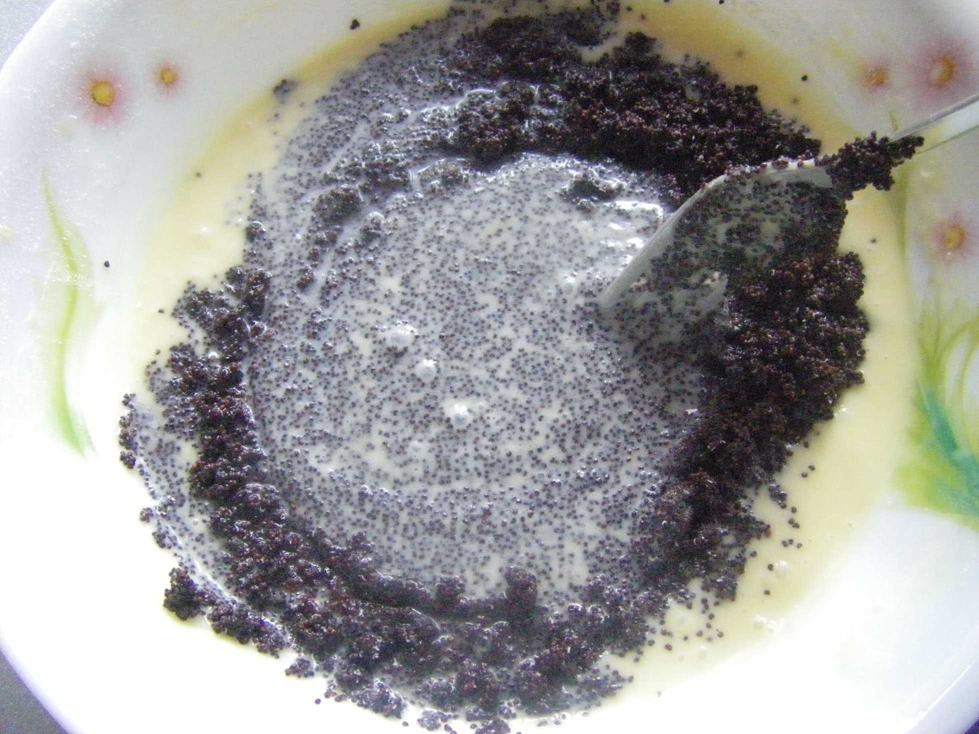 Дам Вам небольшой совет: чтобы было меньше грязной посуды тесто делайте по очереди в одной таре — сначала с орехами или курагой, а последний замес с маком. Пока выпекается один корж — готовим следующий замес.
