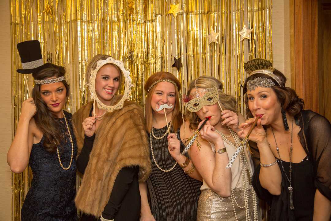 После праздника в стиле Великого Гэтсби фотографии должны остаться в обязательном порядке! Но чтобы они были наиболее эффектными, обустройте фотозону, сделав ей соответствующее оформление: