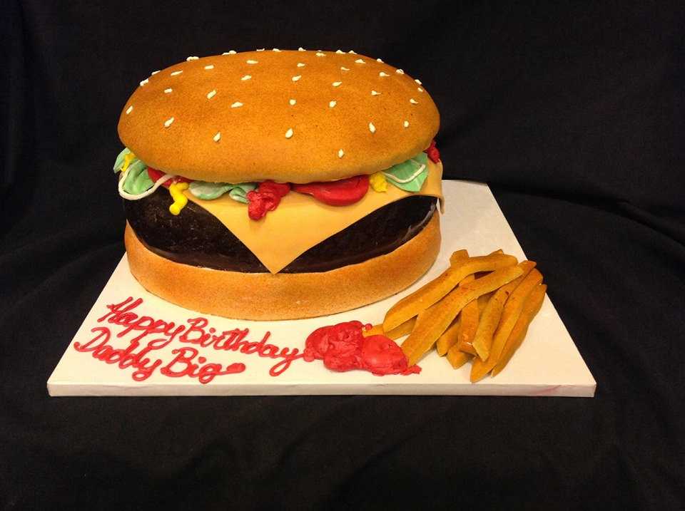 Здесь существует минимум два способа. Если вы не хотите думать о том, как же заменить ингредиенты бургера на сладкие аналоги, можете приготовить любой бисквитный торт, а из мастики вылепить все детали – красные томаты, желтый сыр, зеленый салат. Верхний корж также можно обтянуть мастикой, чтобы он выглядел гладким и больше походил на булочку.