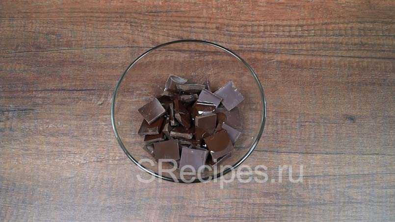Шоколад разломать на куски и вместе с другими ингредиентами для глазури поместить в небольшой сотейник. Поместить его на водяную баню с горячей водой и нагреть, пока все ингредиенты не растворятся. Снять и немного остудить.