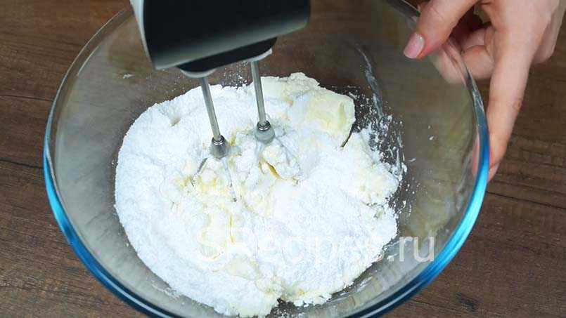- В другой емкости соединить творог, ванильный экстракт и еще 50 г пудры, взбивать на средней скорости миксера до растворения всех крупиц и комков.