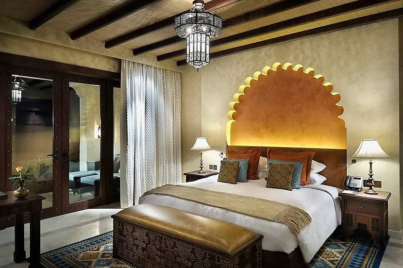 Выбор цветовой гаммы зависит от направления восточного стиля. В индийском интерьере используются более яркие оттенки, блестящие аксессуары. Арабское направление напоминает пустыню с её золотыми песками и голубым небом.