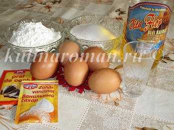 1. Яйца соединить с сахаром, ванильным сахаром и взбить в пышную пену.
