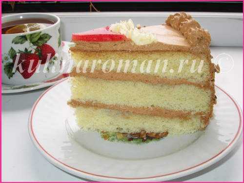 Соединять эти компоненты нужно при соблюдении их одинаковой температуры. Это предотвращает расслоение готового продукта. Такой торт можно украсить карамельными или шоколадными звездами по числу лет человека, для которого он испечен. Торт отлично подойдет для юбиляра.
