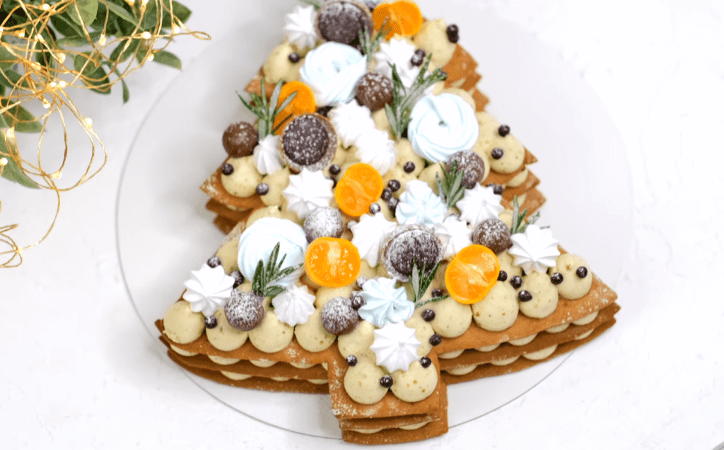 - свежие ягоды и фрукты – их можно не только красиво выложить сверху на елочку, но и добавить в начинку между коржами вместо конфитюра;