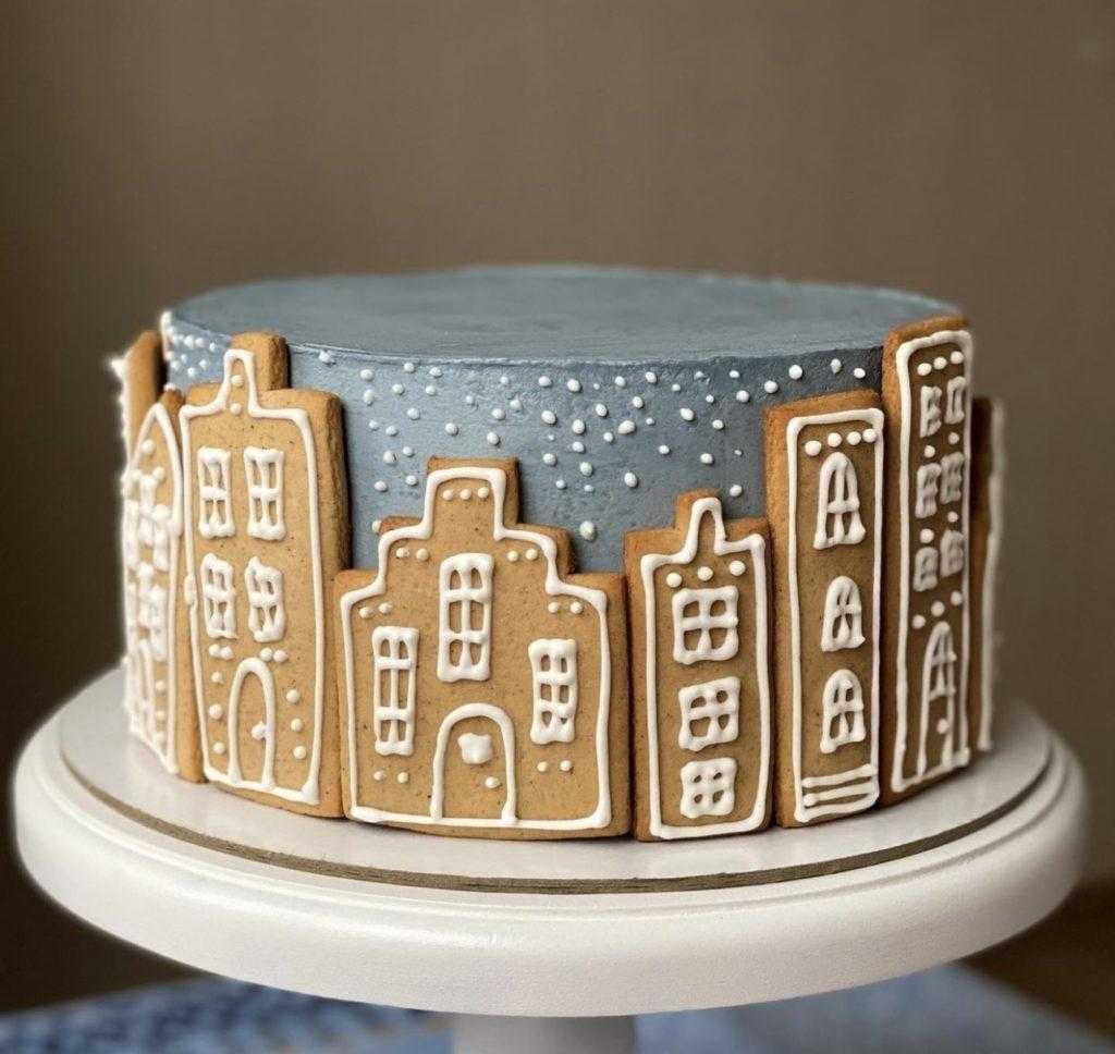 Торты можно оформить пряниками. Такой вариант очень простой. Можно сделать ёлочки, домики или игрушки. Тут решать только вам!