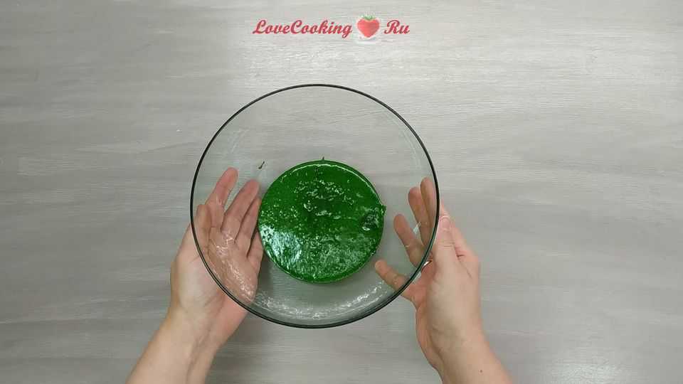 Достаём из духовки и сразу обрезаем по трафарету, пока корж мягкий. Аккуратно снимаем корж с коврика и выпекаем следующий.