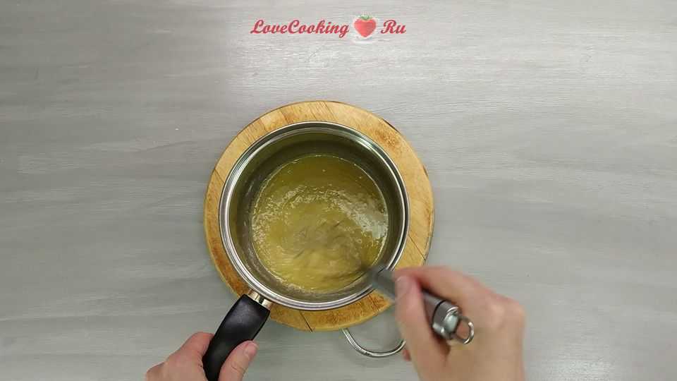 - Смесь размешать и поставить на медленный огонь. Дождаться, пока масло полностью не растопится.