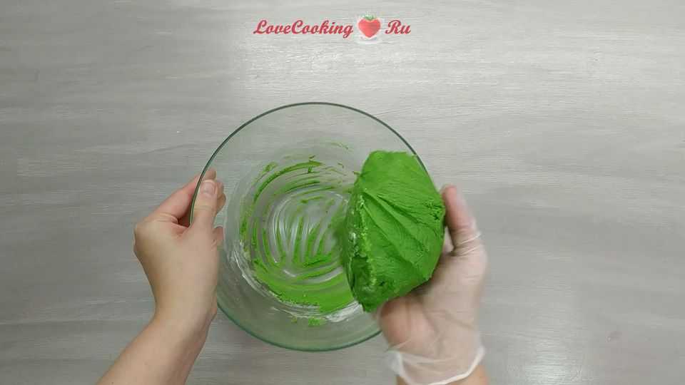 Нагреваем до объединения всех ингредиентов. Добавляем чай Матча, хорошо перемешиваем. Можете и не окрашивать тесто или использовать любые пищевые красители. Если окрашиваете, то делайте более насыщенный цвет, так как с добавлением муки и при выпечке он посветлеет.