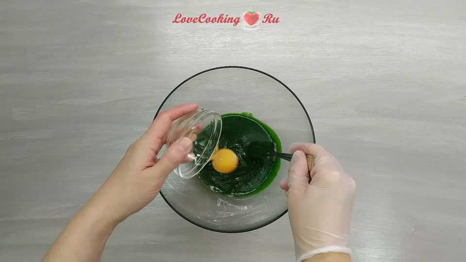 Добавляем яйца, хорошо перемешиваем венчиком.
