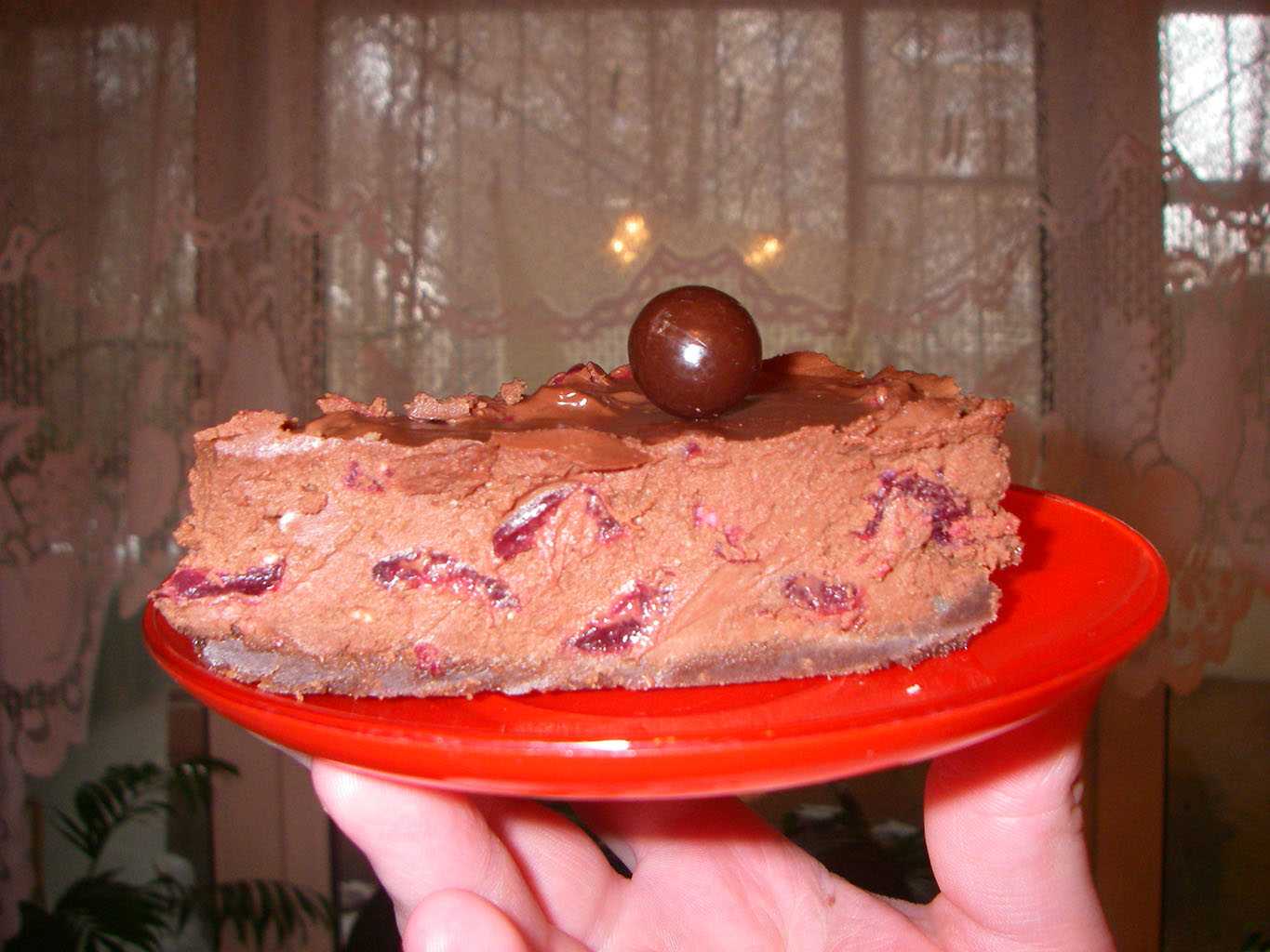 Шоколадный чизкейк можно приготовить и с вишней. Он будет таять во рту, оставляя после себя вишнёвое послевкусие.