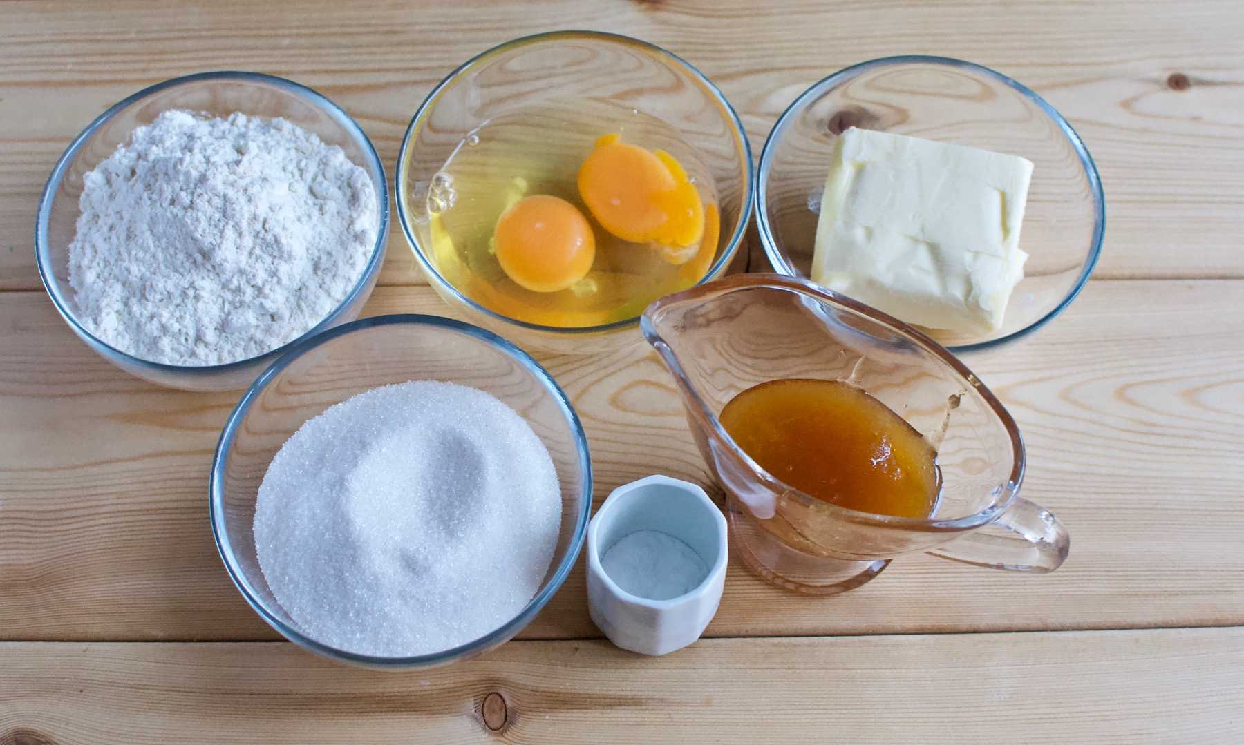 Для приготовления шоколадно-медового торта пригодятся продукты, которые есть у любой хозяйки.