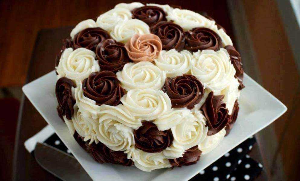 - В центре разместить несколько цветов (с помощью фигурной насадки в виде бутонов).