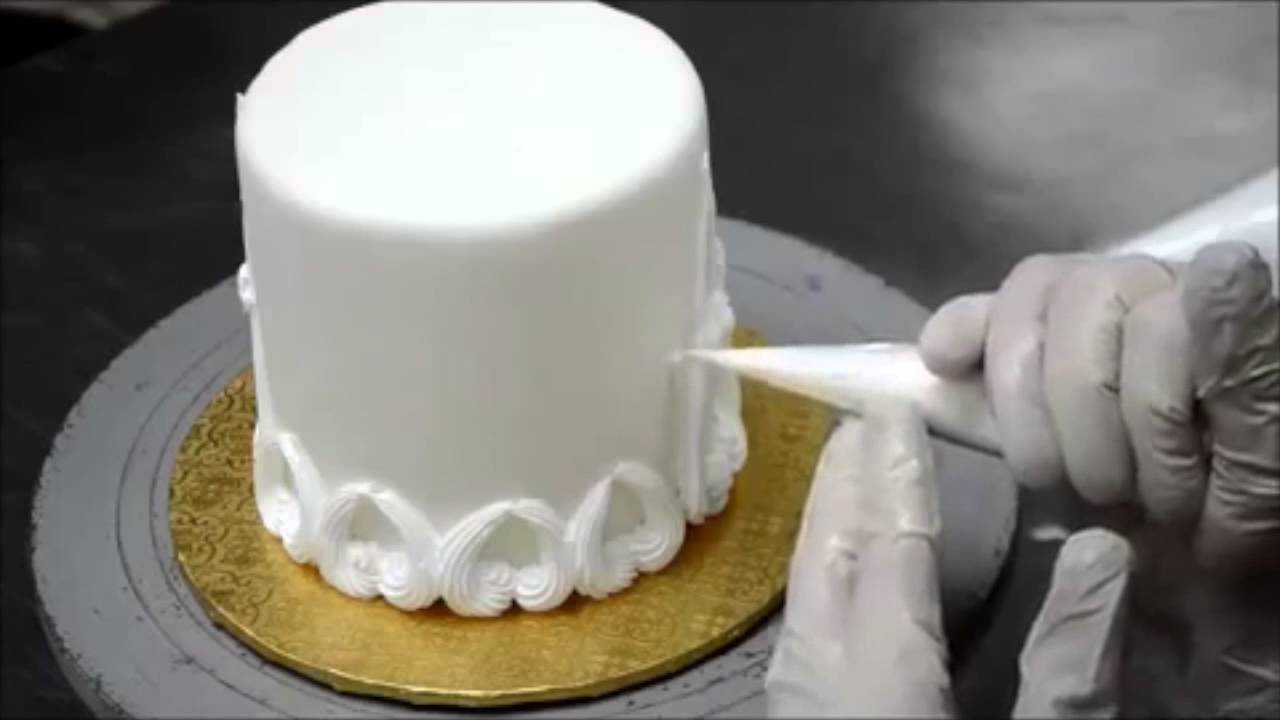 - По краю торта выдавить с помощью тонкой фигурной насадки волнистую линию.