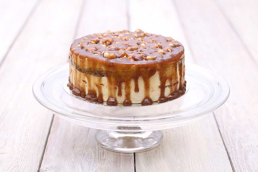 Наденьте на торт кондитерское кольцо, подходящее по диаметру к его размеру, чтобы желе осталось наверху и не стекло по бокам.