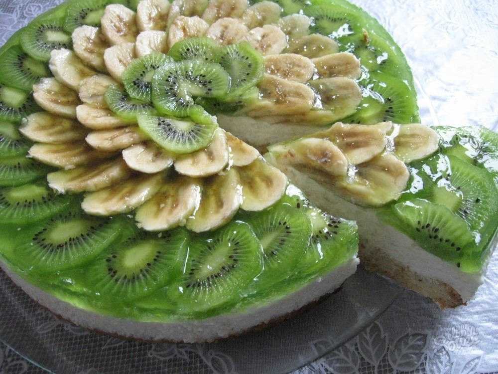Торт без выпечки покрытый желатином и фруктами: подробный рецепт