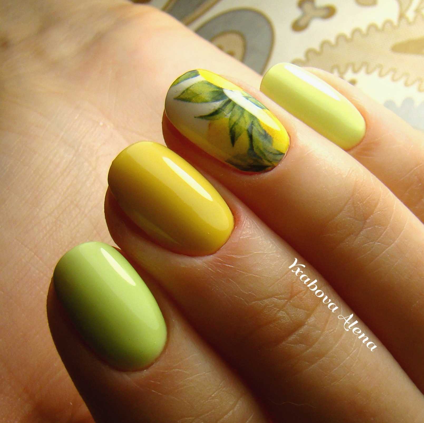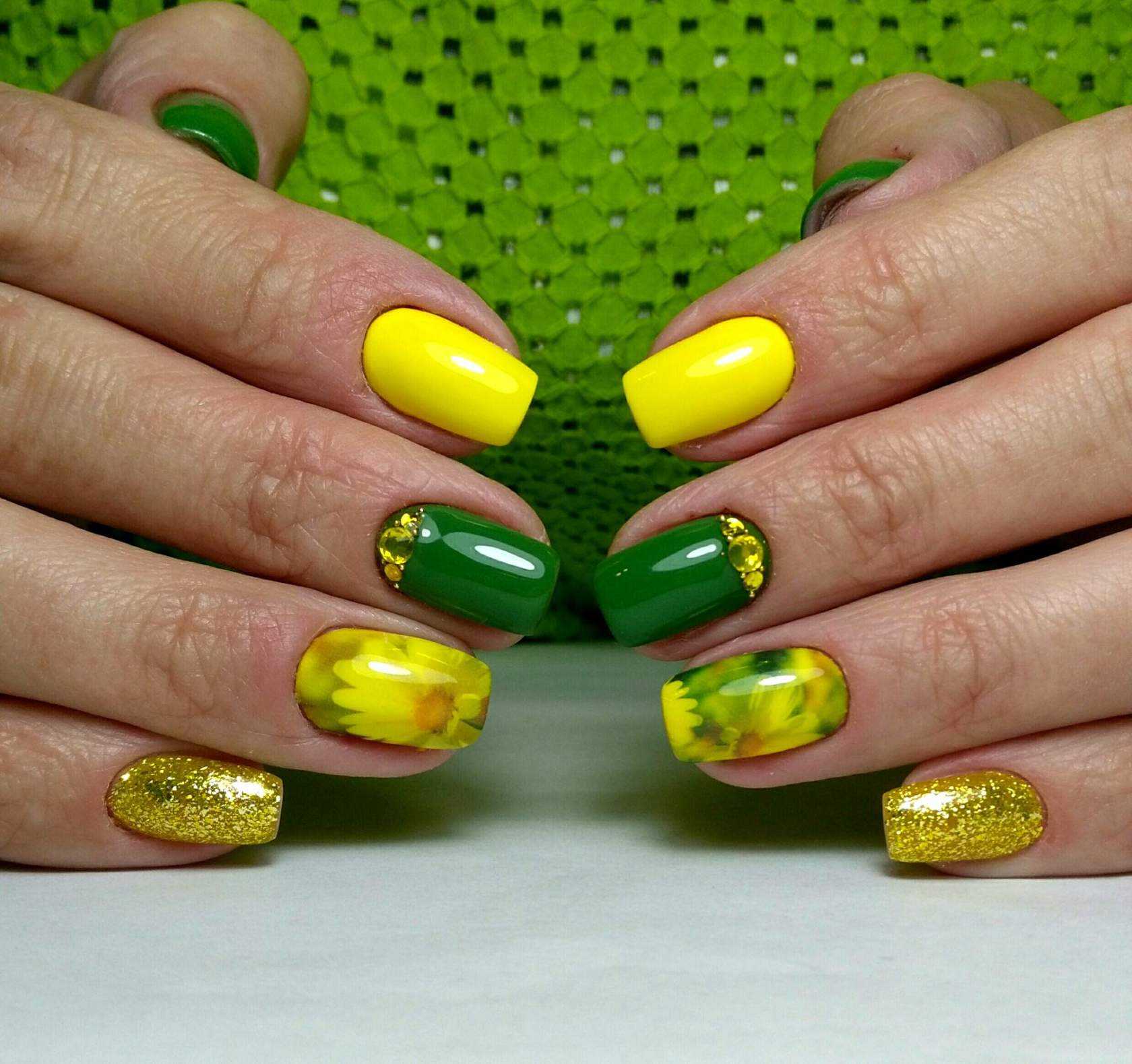маникюр желтый с зеленым