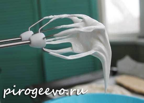 Взбиваем белковую массу упорно и не ленясь, пока не увидим устойчивые пики. Если хорошо взбитые белки с сахаром могут устоять в виде таких вот сугробчиков на поверхности — это хорошо.