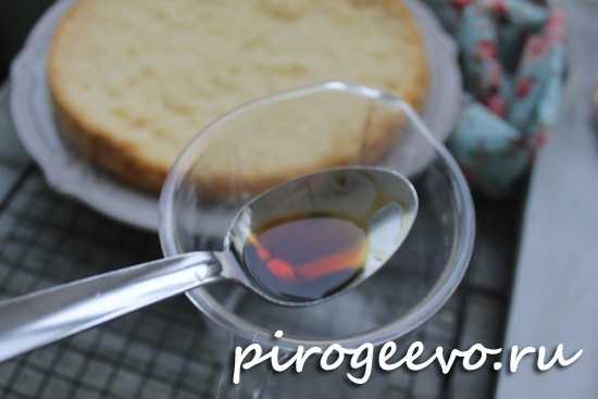 Аккуратно пропитываем бисквитный корж по всей поверхности. Тоже самое делаем со вторым коржом, который станет верхушкой торта.